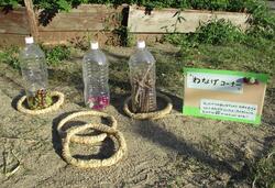キッズパークの田んぼでとれたお米のわらを使ってわなげをつくったよ!