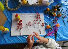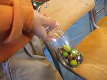 キッズパークに実っていた木の実やどんぐり、植物の種などから好きなものを選んで楽器を作ります。
