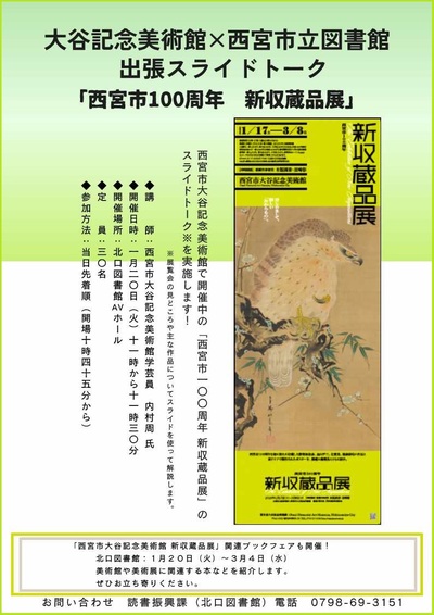 【北口図書館】西宮市大谷記念美術館×西宮市立図書館 出張スライドトーク「西宮市100周年 新収蔵品展」