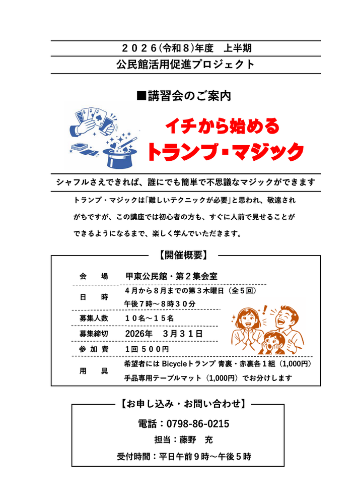 イチから始めるトランプ・マジック(2026年度上半期公民館活用促進プロジェクト)