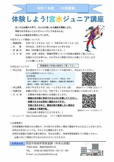 令和7年度宮水ジュニア講座一覧(冬期) 募集期間終了