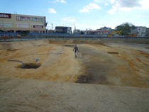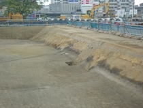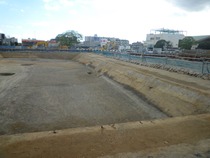 現在、新陸上競技場スタンド及び新体育館(南側部分)の建設予定地付近を調査しています。(10月中旬撮影)