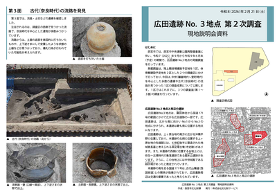 なお、現地説明会の開催や郷土資料館での展示などを検討しています。現場の状況などにより開催しない場合もありますが、決定次第、本ホームページなどを通じて皆様にお知らせいたします。