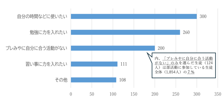 現在、部活動に参加していない生徒の内、