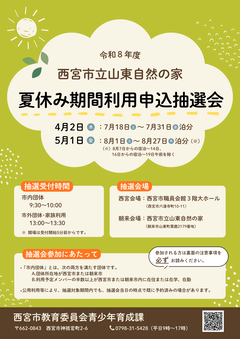 令和8年度 西宮市立山東自然の家夏休み期間利用申込抽選会のお知らせ