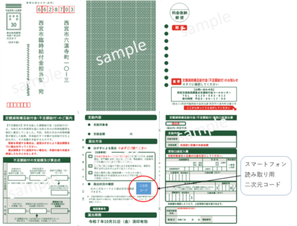 往復ハガキの返信部(受取口座届出書)を返信した方は、お手元に残っている往信部分の二次元コードをスマートフォン等で読み取ることで、届出状況を確認することができます。