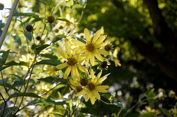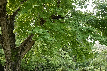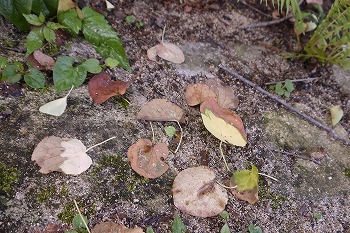 下に落ちた葉は甘い香り(桂の木の花壇)