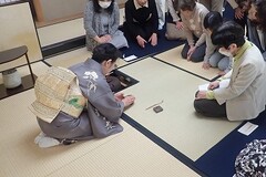 | 内容 | 北山山荘の広間で先生のお点前を見ながら、薄茶・お菓子のいただき方など薄茶席での作法について |