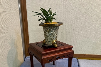 葉に表れた縞や覆輪などの模様と鉢とのコラボレーションもお楽しみください。