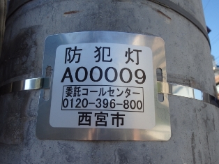 - 防犯灯管理番号(A、C、Eから始まる番号、防犯灯管理プレートに標記)