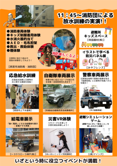 『小学校への避難訓練』及び『各コーナーでの体験型訓練』を行います。