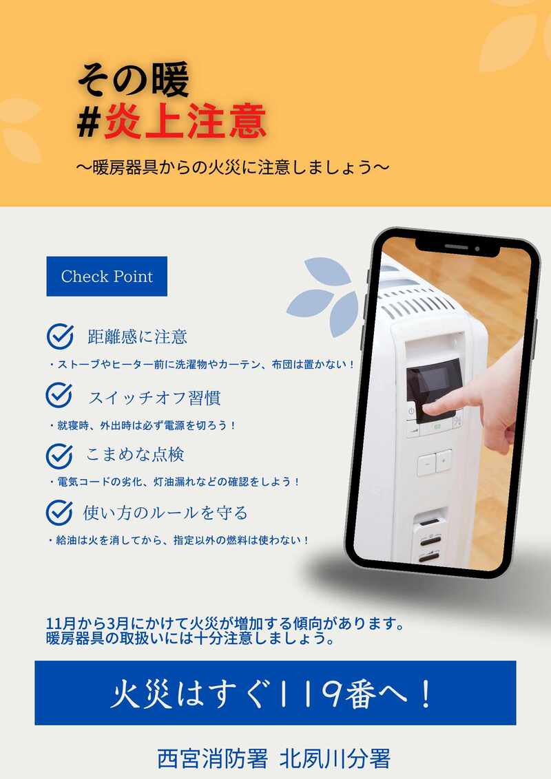 【北夙川分署】暖房器具の取扱いに注意しましょう!