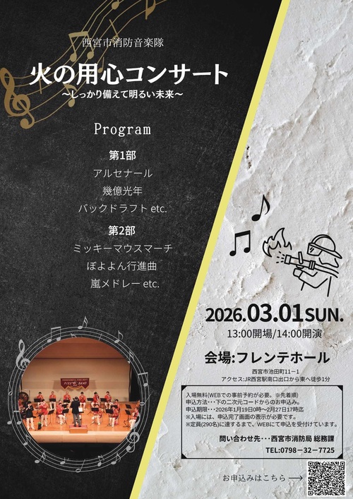 【消防局】令和8年 西宮市消防音楽隊「火の用心コンサート」の開催案内