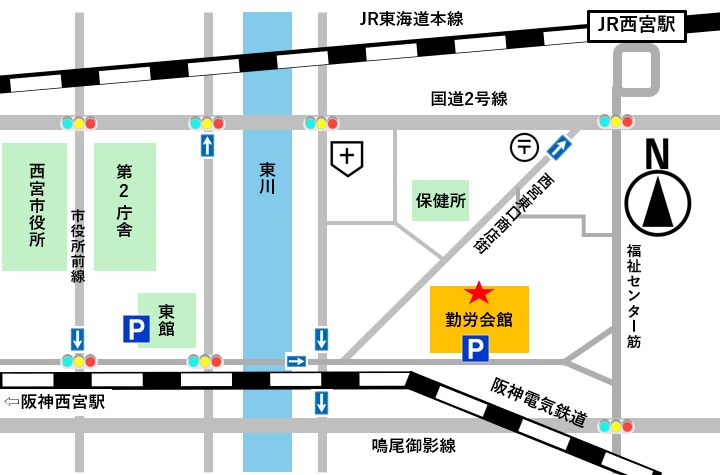 ※駐車場に限りがございますので、近隣の民間駐車場や西宮市役所公共駐車場(西宮市役所東館)をご利用ください。