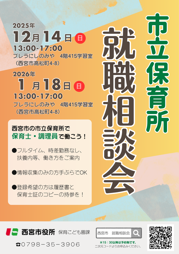 【市立保育所】西宮市・市立保育所の就職相談会の開催 ~公立保育所で働こう!~